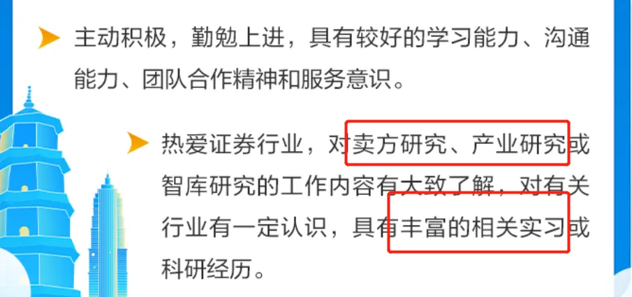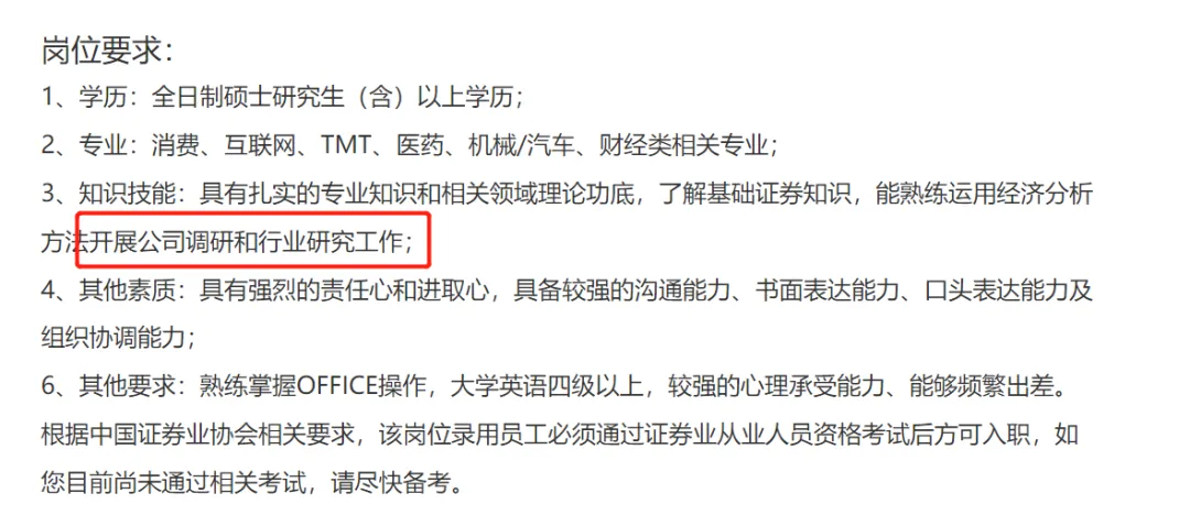 不止国外投行需要掌握行研技能的人才,国内各大券商都卷到实习上,面试行研就必须要有1-2段行研的相关经历,要求你的实习相关+专业性。
