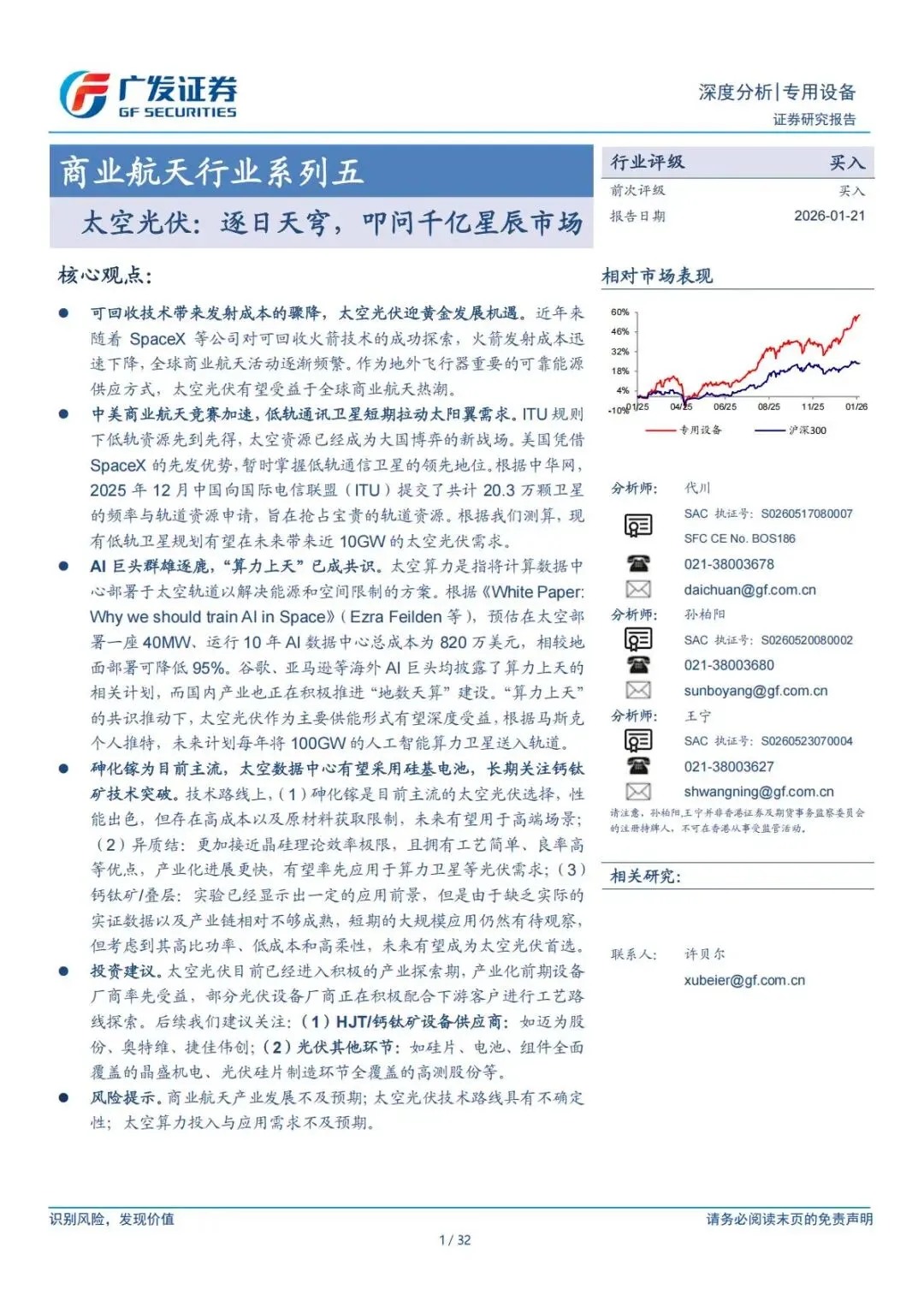 核心主题:太空光伏是商业航天关键能源,可回收火箭降本打开千亿市场。