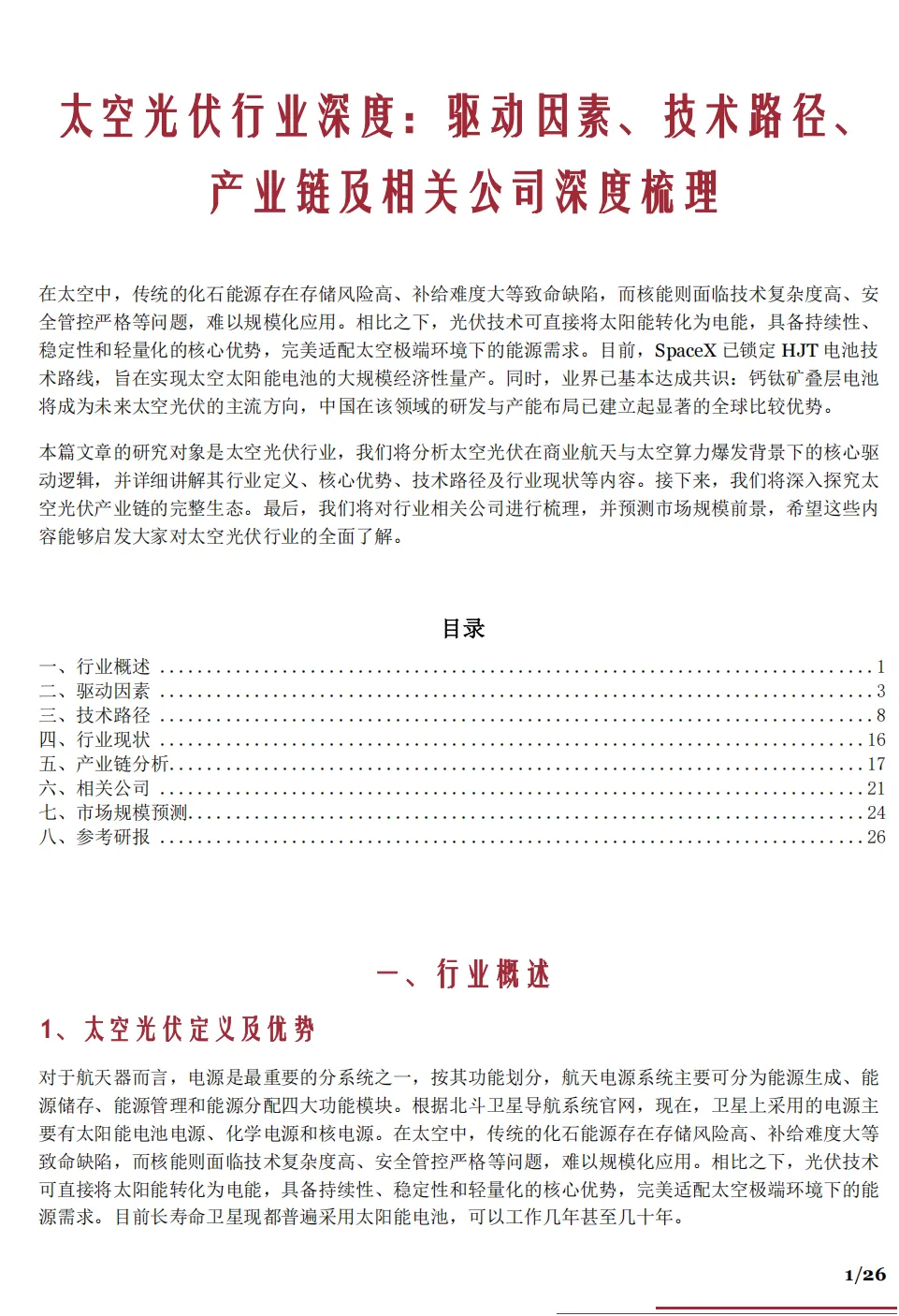 当前位置:首页>行业研报>『研报』太空光伏行业深度:驱动因素、技术路径、产业链及相关公司深度梳理