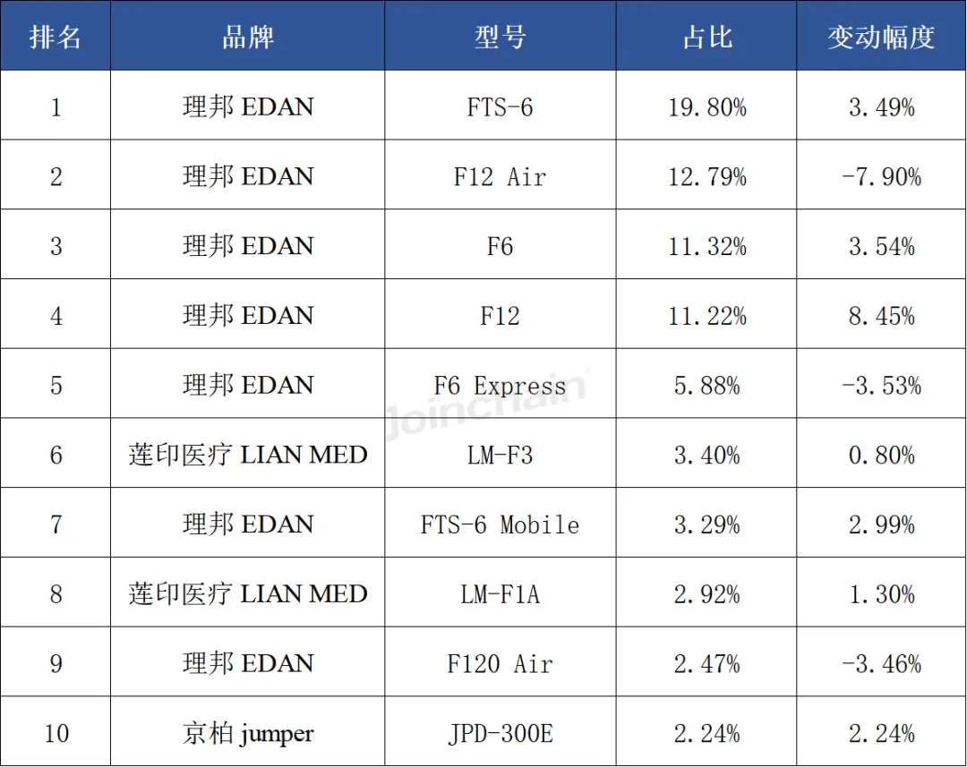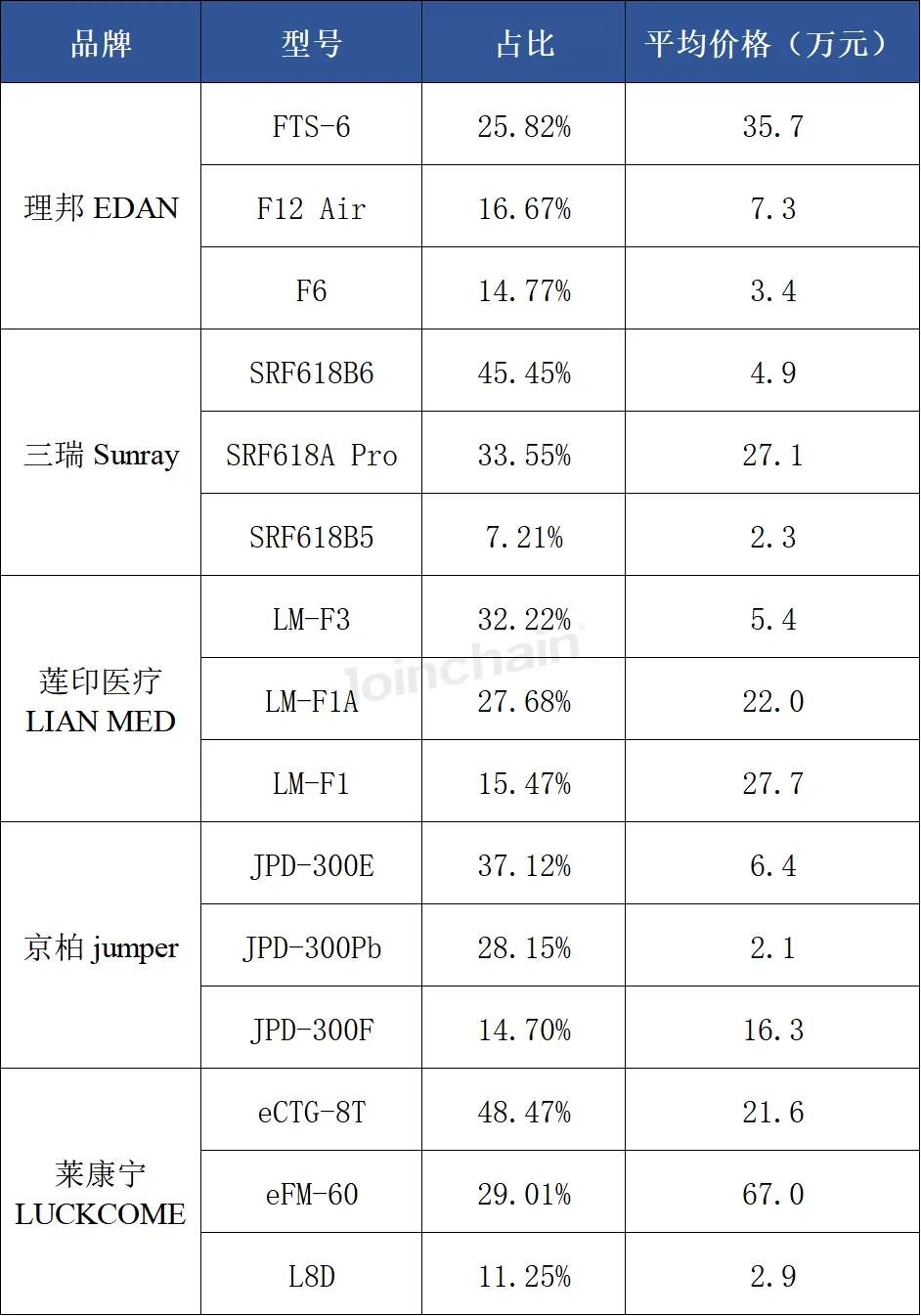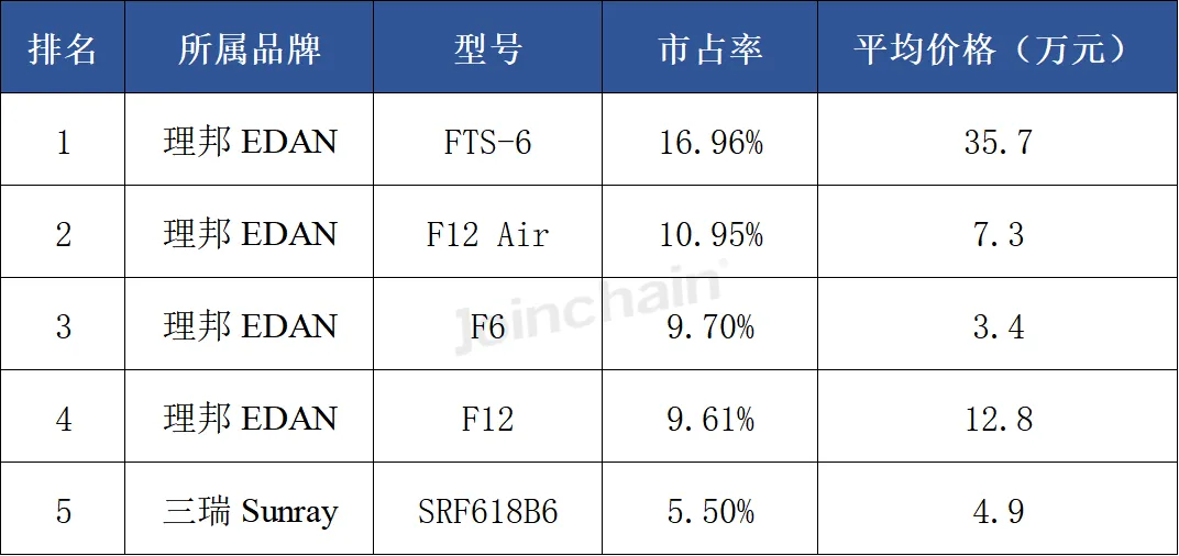 图表4 2025年我国妇产科测量、监护设备TOP5品牌主要型号情况