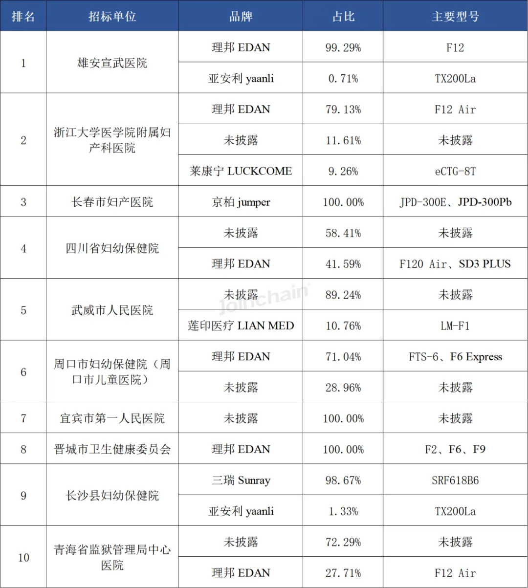 采购单位排名前三的分别为雄安宣武医院、浙江大学医学院附属妇产科医院和长春市妇产医院。