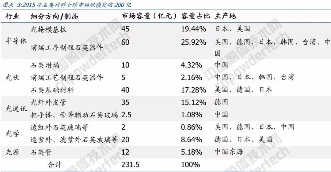 (1)石英下游半导体+光通信需求过半,全球市场规模达到百亿量级