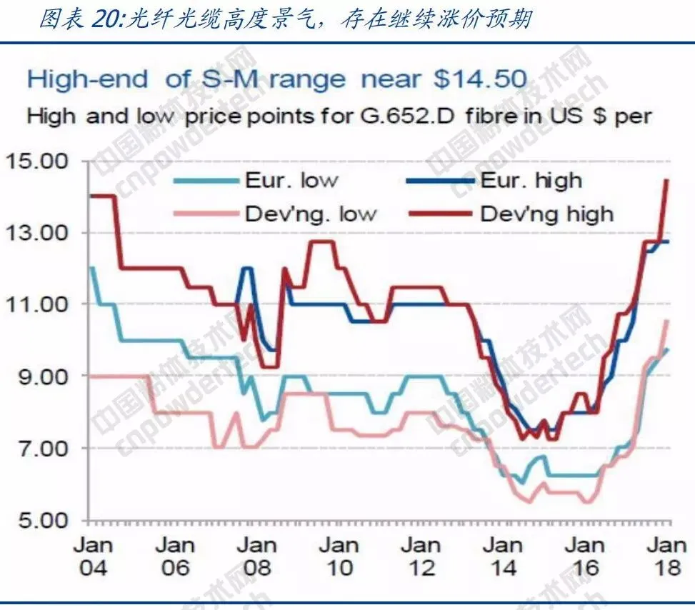 自2017年8月19日起,继续对原产于美日的进口光纤预制棒所适用的反倾销措施进行期终复审调查,调查于2018年8月18日前结束,期间将继续对原产于日本和美国的进口光纤预制棒征收反倾销税。我们认为2018年难以看到供需格局的改变,光纤光缆行业高景气无忧,并且存在继续涨价的预期。