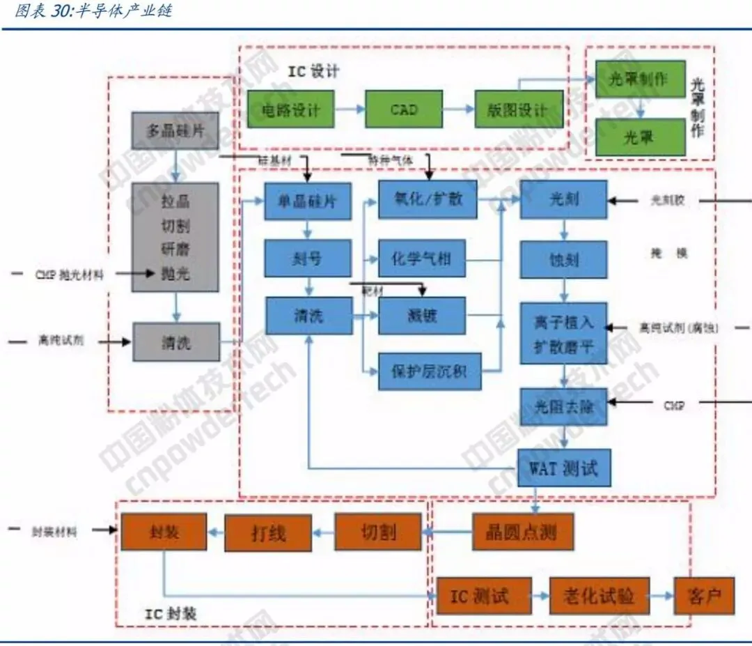 在半导体领域中,石英是不可或缺的原料。几乎所有工序从生产辅助部件到用于实际硅片加工的工具都或多或少的使用着石英制品。石英坩埚用于制造单晶硅环节,石英玻璃钟罩用于光刻工程,石英管制作的石英舟和石英支架可以用于IC外延、扩散和光刻工程等。故而作为半导体重要的支持材料,也将在半导体市场的发展进程中充分获益。