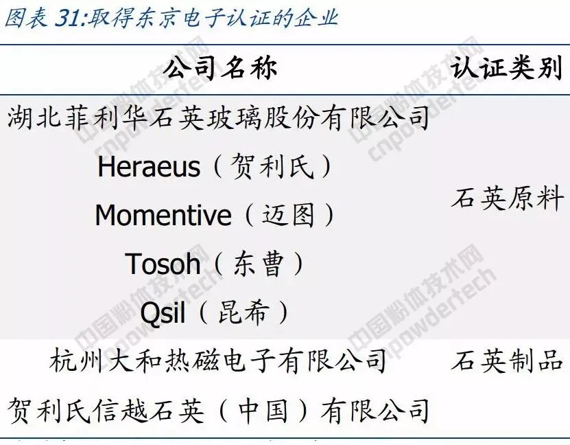 东京电子主要从事工业用电子产品的制造和销售,其中半导体制造设备部门致力于提供用于晶片处理、等离子体蚀刻设备、热处理系统等的涂布机和显影机,是国际领先的主要半导体设备商,目前国内石英原料仅有菲利华通过其认证,石英股份正在积极推进国际认证,预计2018年上半年获取认证资质,目前进展顺利。