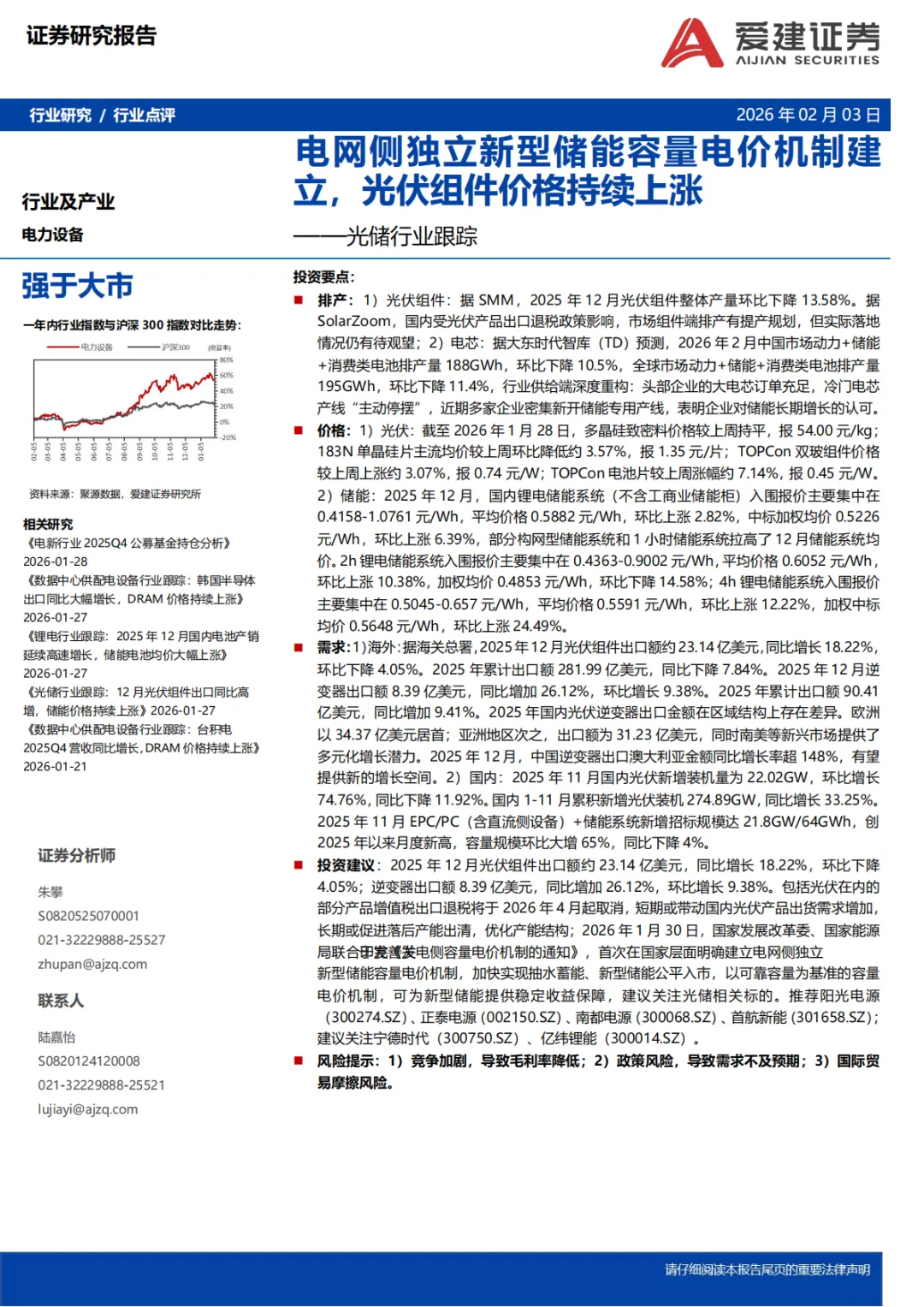 『研报』光储行业跟踪:电网侧独立新型储能容量电价机制建立,光伏组件价格持续上涨