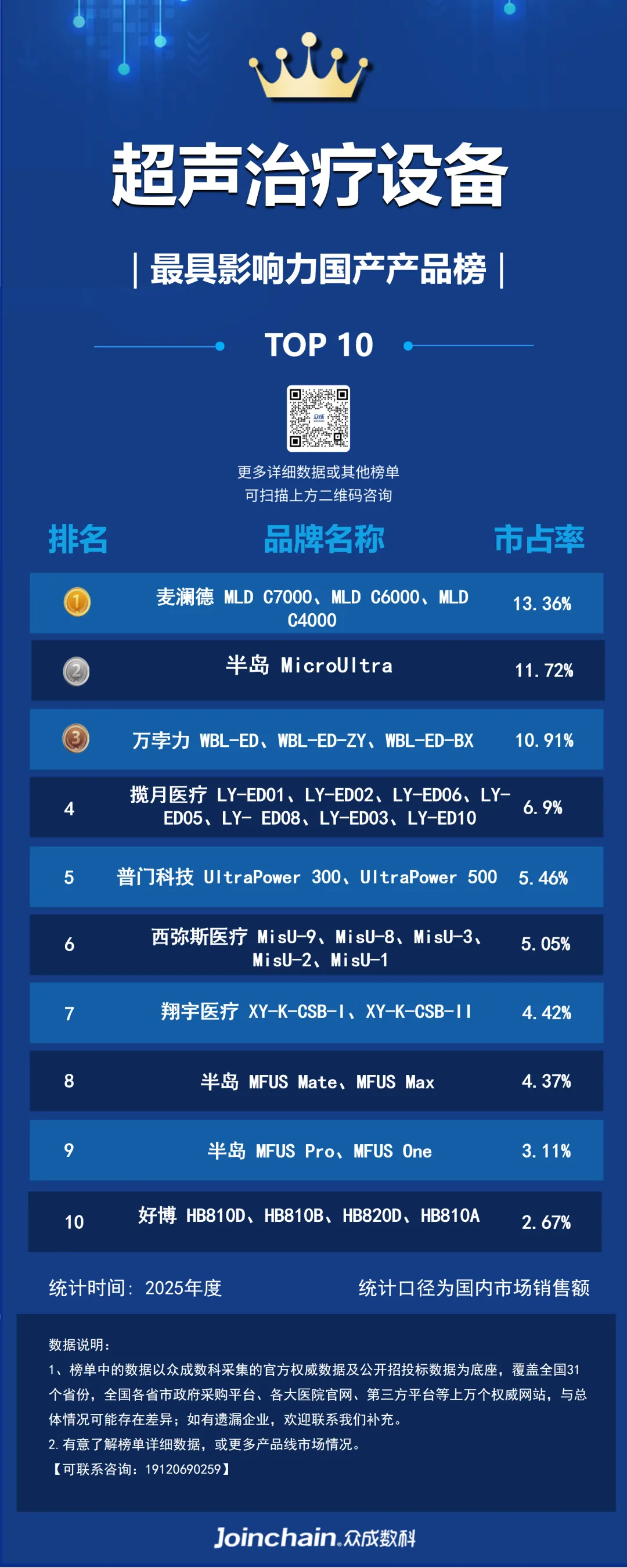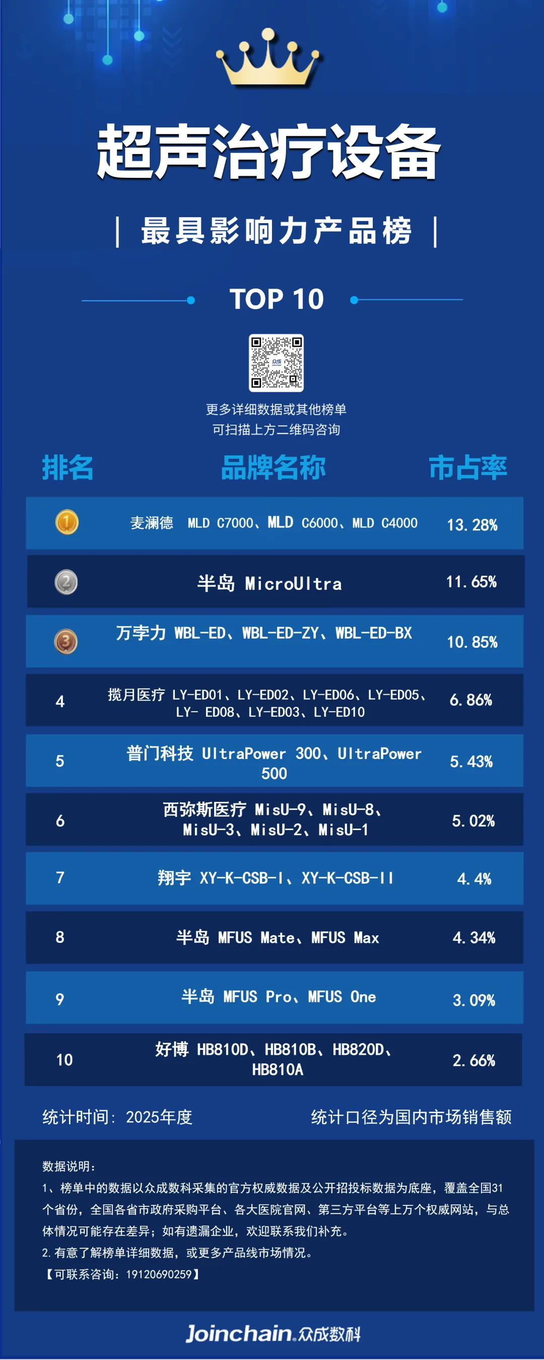 行业研报 | 2025年度超声治疗设备最具影响力排行榜:诺半岛、麦澜德、普门科技排名前三,MLD C7000系列成年度热门型号