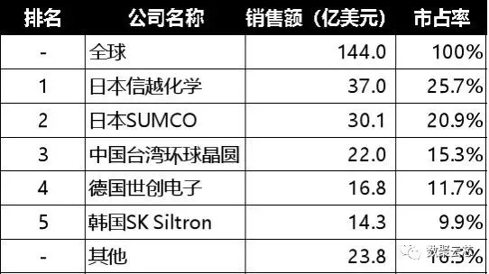 硅晶圆销售额——主要公司财报,整理参考《全球硅晶圆市场研究报告》2018 作者:关牮、肖隽翀