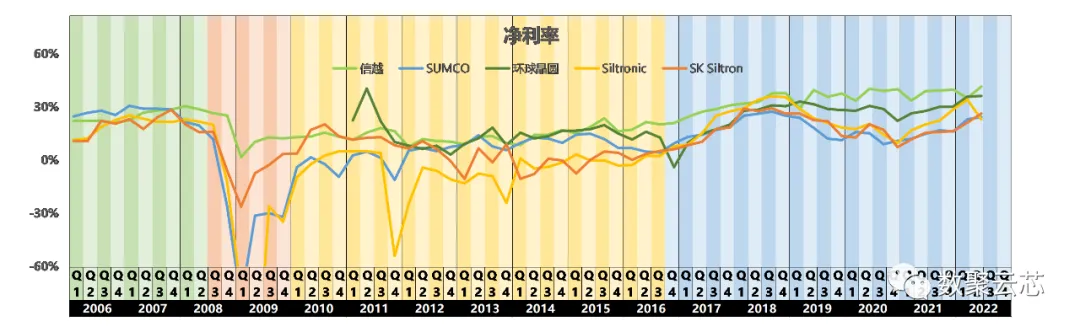 SK Siltron的净利率基本呈现出与毛利一致的走向,并且随售价的波动较为明显。