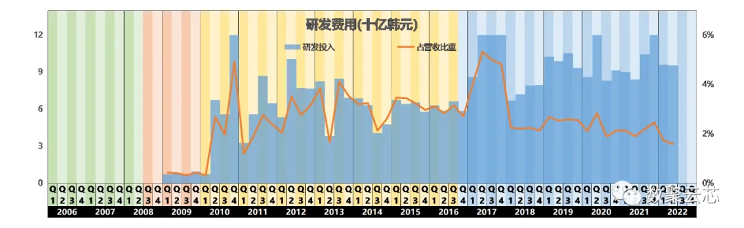 观察可知,SK Siltron总研发投入随着企业规模的扩大不断提高,但占营收比重总体保持在不到4%的水平(这一比重与信越化学相接近,但明显低于德国Siltronic);2018年以来维持在2%左右的较低水平。主要由于2018年后业务规模增长过快,研发、管理等固定期间费用没有同比增加。