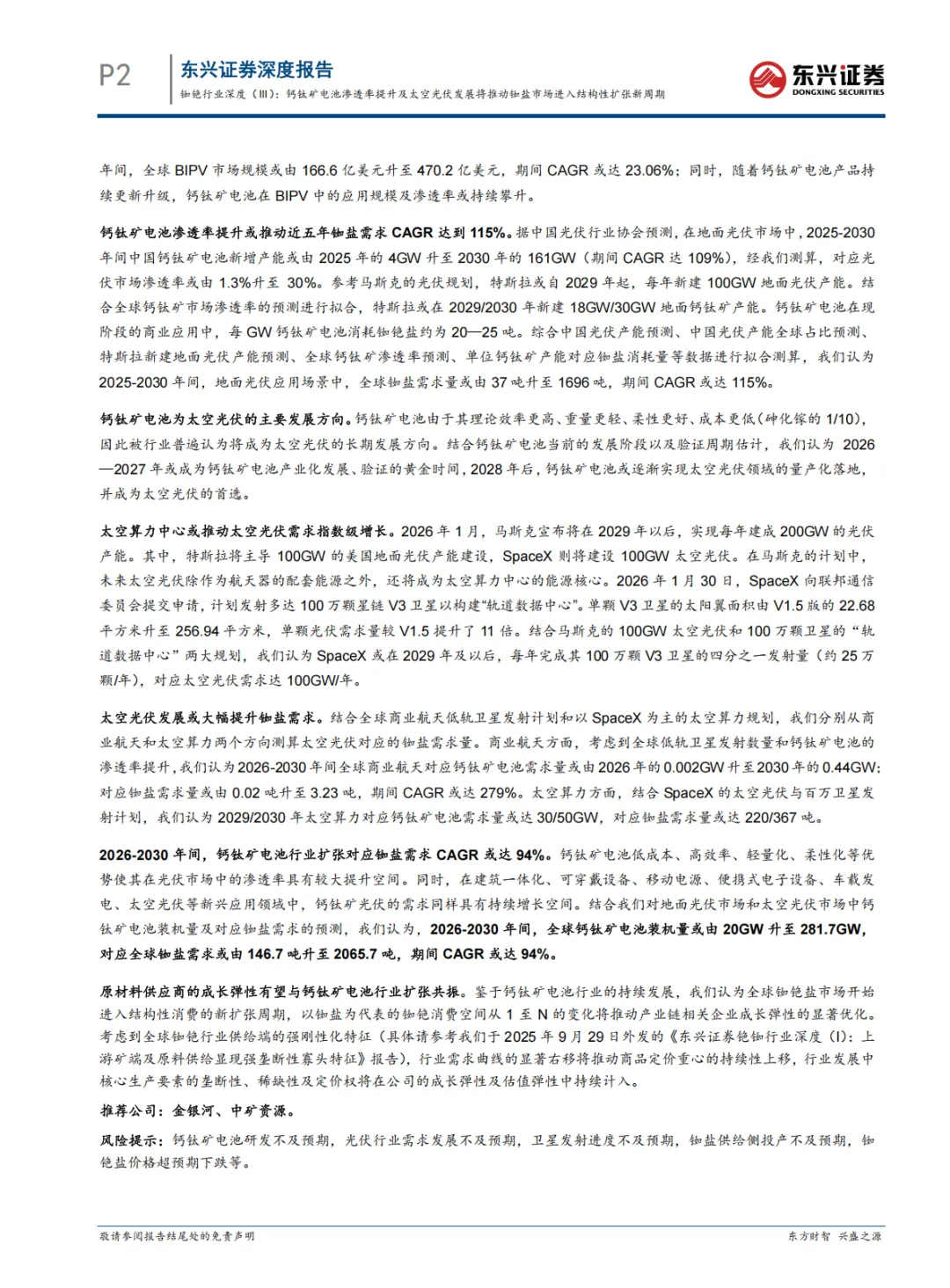 当前位置:首页>行业研报>『研报』铷铯行业深度(Ⅲ):钙钛矿电池渗透率提升及太空光伏发展将推动铷盐市场进入结构性扩张新周期