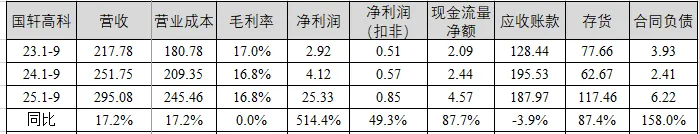 营收情况:国轩高科前三季度营收295.08亿元,同比增长17.2%,毛利率16.8%,同比持平,净利润达25.33亿元,主要是投资奇瑞汽车,市值增加;净利润(扣非)0.85亿元,同比增长49.3%;应收账款同比下降3.9%;存货同比增长87.4%;合同负债余额为6.22亿元;现金流量净额为4.57亿元,同比增长87.7%。