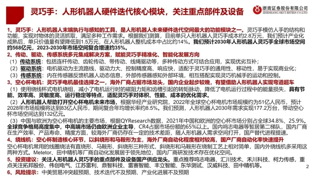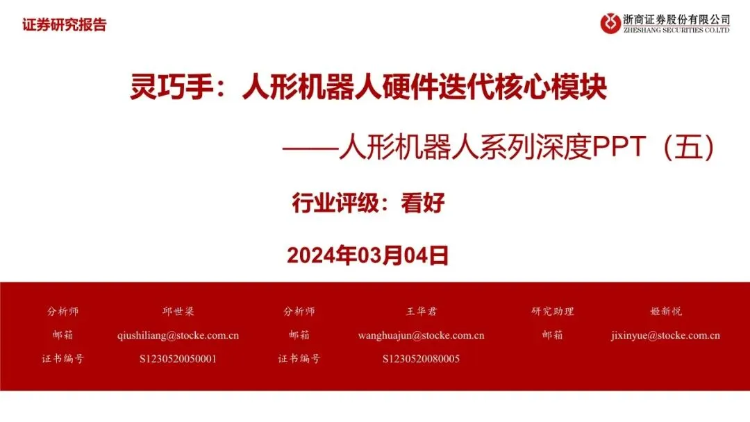 人形机器人行业专题报告:动力、传动、传感,灵巧手分析框架与零部件选型|附41页PDF文件下载