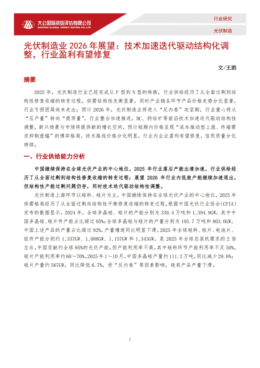 『研报』光伏制造行业2026年展望:技术加速迭代驱动结构化调整,行业盈利有望修复