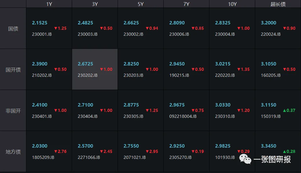 截止发稿,10年期国开活跃券220220收益率上行1.45BP,收在3.0340%,10年期国债活跃券230004收益率上行1.65BP,收在2.840%。