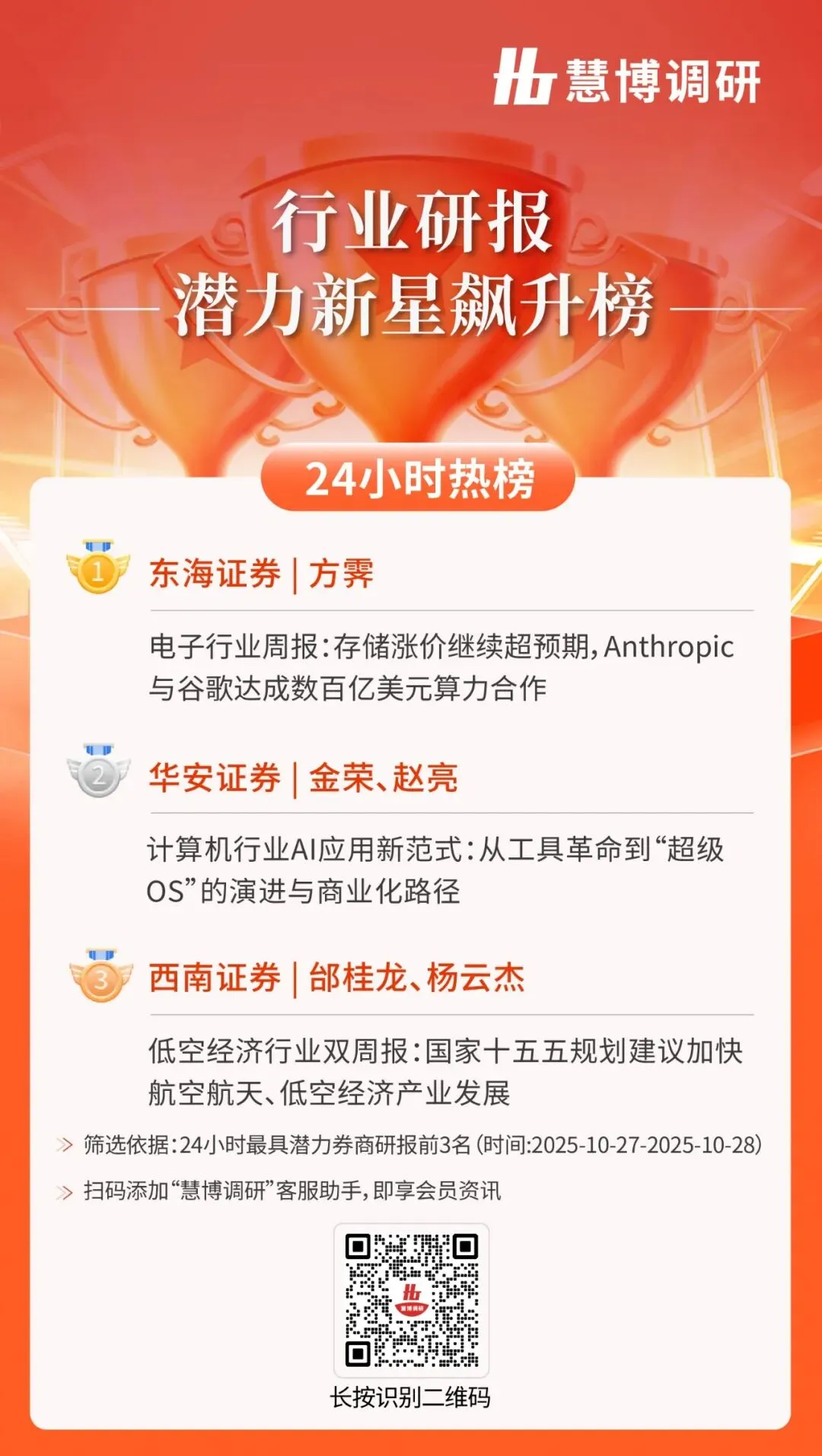 24小时热榜 | 10月28日行业研报新星飙升榜速递