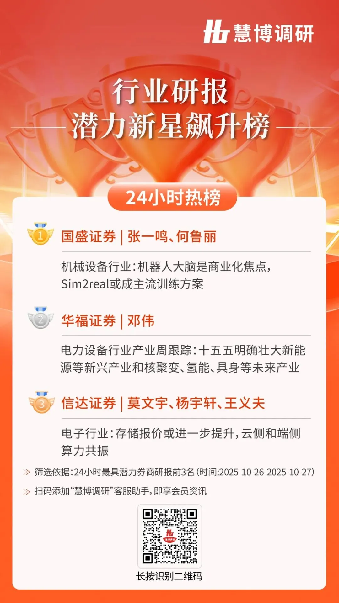 24小时热榜 | 10月27日行业研报新星飙升榜速递