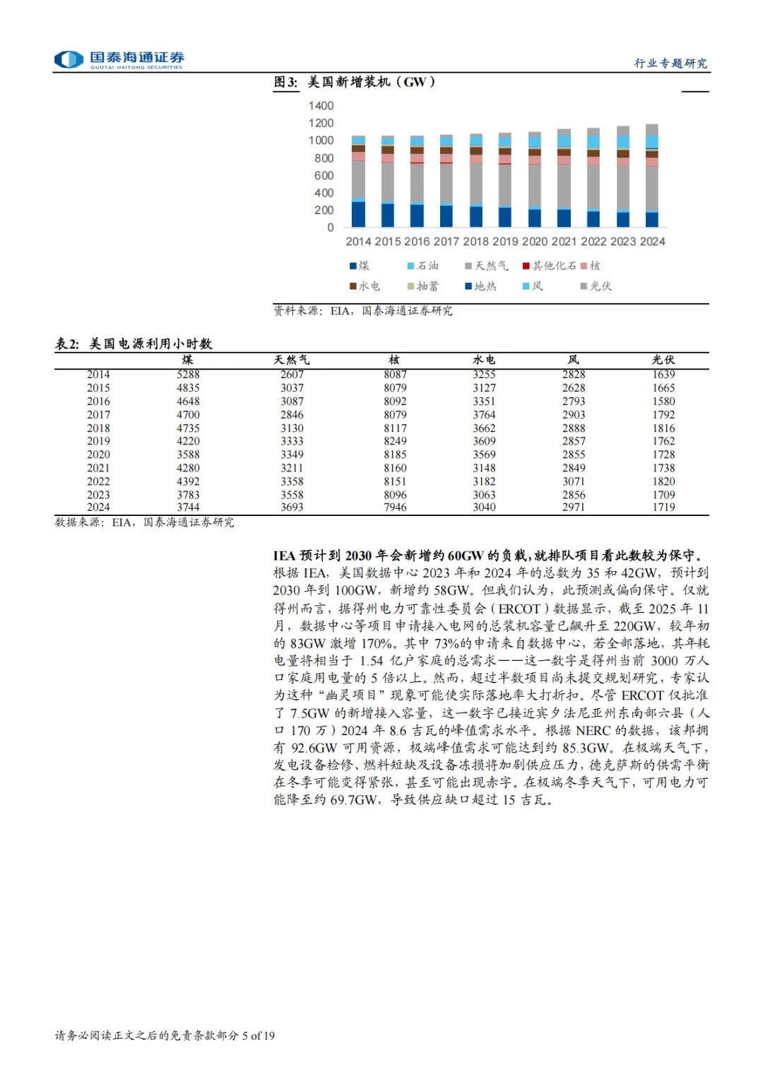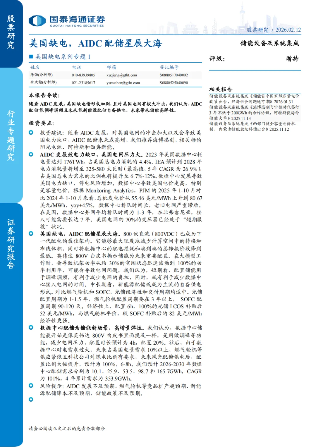 『研报』储能设备及系统集成行业美国缺电系列专题1:美国缺电,AIDC配储星辰大海