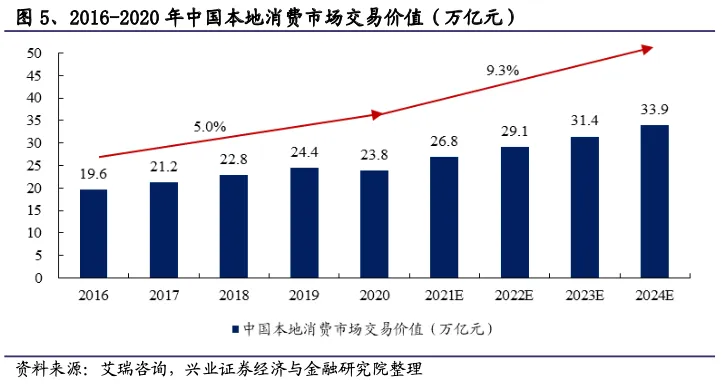 新消费趋势助力本地消费市场增长,即时配送服务场景随本地消费市场进化而不断扩大。2020年中国本地消费市场的交易价值达人民币23.8万亿元,5年复合增长率达5.0%。线上线下业务融合趋势下,本地消费行业服务覆盖面不断扩大,预计2024年将进一步增至人民币33.9万亿元。即时配送服务起源于餐饮外卖等高频需求,在运力、技术等基础设施日益完善的条件下,逐渐向同城零售、近场电商及近场服务等价值和用户忠诚度更高的场景延伸,其中近场电商是增长最为迅速的场景。其次,依赖于大数据、人工智能等技术的发展以及市场规模的不断扩大,行业全职模式占比降低,众包模式成为市场主流,行业效率有望持续提升。