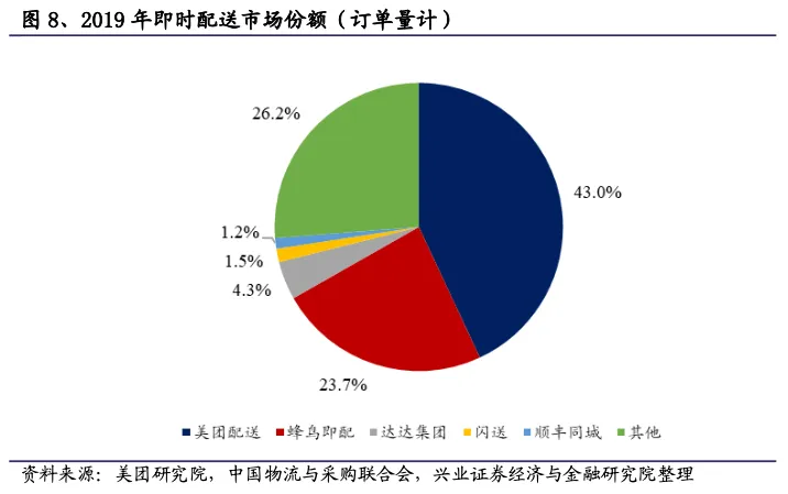 ●第三阶段(2018年至今):订单品类多元化发展,2018年外卖订单占比81%,2019年占比下降至70%。行业整体增速呈现稳定快速增长,整体的订单数量、每单盈利也有显著提升。