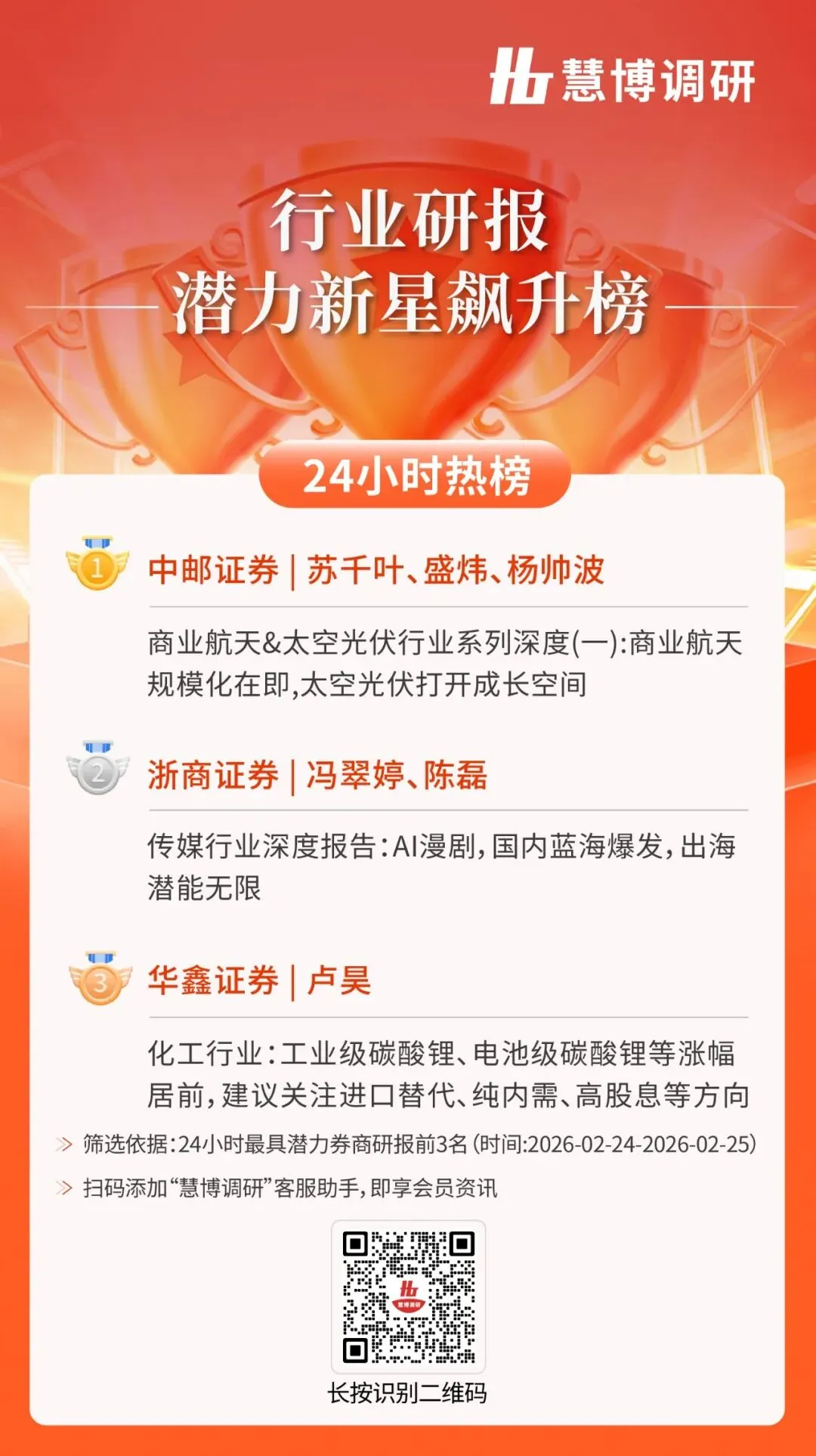 24小时热榜 | 2月25日行业研报新星飙升榜速递