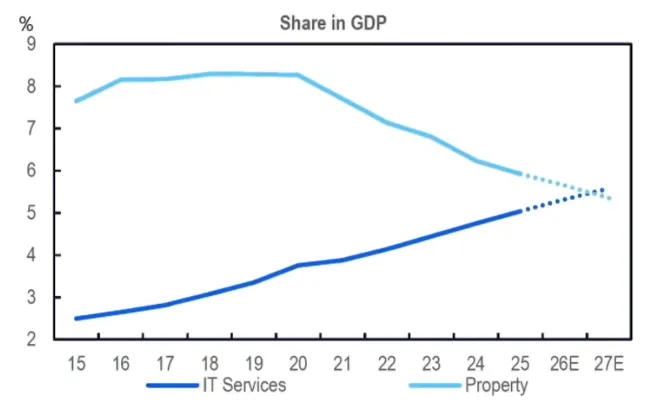 2027年,预期IT将超过房地产在GDP占比