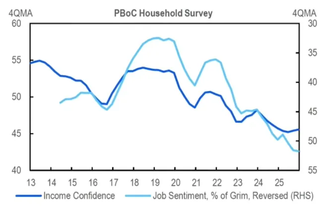 中国人工智能驱动的新经济正迎头赶上全球前沿,推动科技股强劲上涨。从GDP核算角度看,新经济现已具备宏观意义,或可完全抵消房地产拖累。然而,这一充满希望的宏观故事却未能提振微观信心。人工智能可能加剧"无就业增长"风险,深化宏观与微观的脱节。据我们保守估计(相较IMF预测更为谨慎),人工智能可能影响中国31%的就业岗位,其中9.6%(约7000万岗位)面临直接替代风险,21.4%的岗位将提升生产力但同时面临更激烈竞争。服务业和年轻人受冲击最为显著。为避免陷入图灵陷阱,政策需优先推动智能增能而非替代,强化社会安全网,确保AI红利公平再分配。优化工作生活平衡是将AI生产力提升转化为内需的关键路径。AI治理虽被低估,却是中国AI投资的关键因素。
