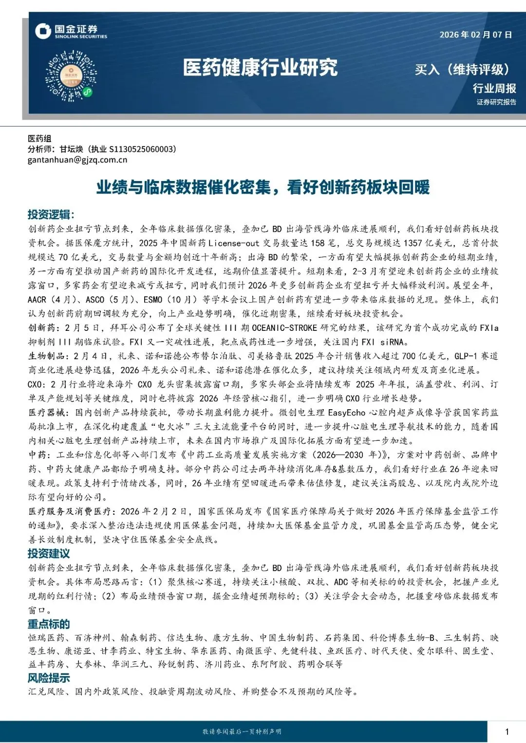 回复暗号:医药健康行业研究:业绩与临床数据催化密集,看好创新药板块回暖-260207-国金证券-18页