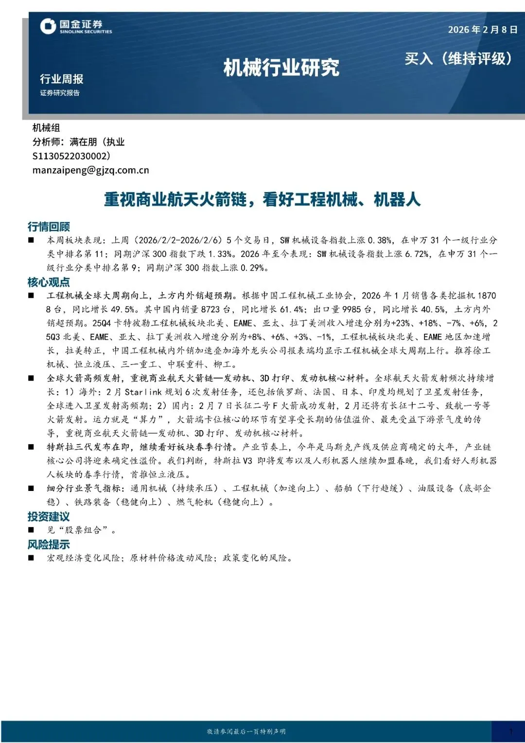当前位置:首页>行业研报>机械行业研究:重视商业航天火箭链,看好工程机械、机器人
