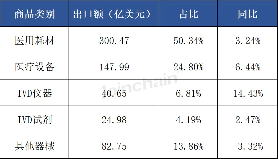 表 1 2025年中国医疗器械各商品类别出口额及占比情况