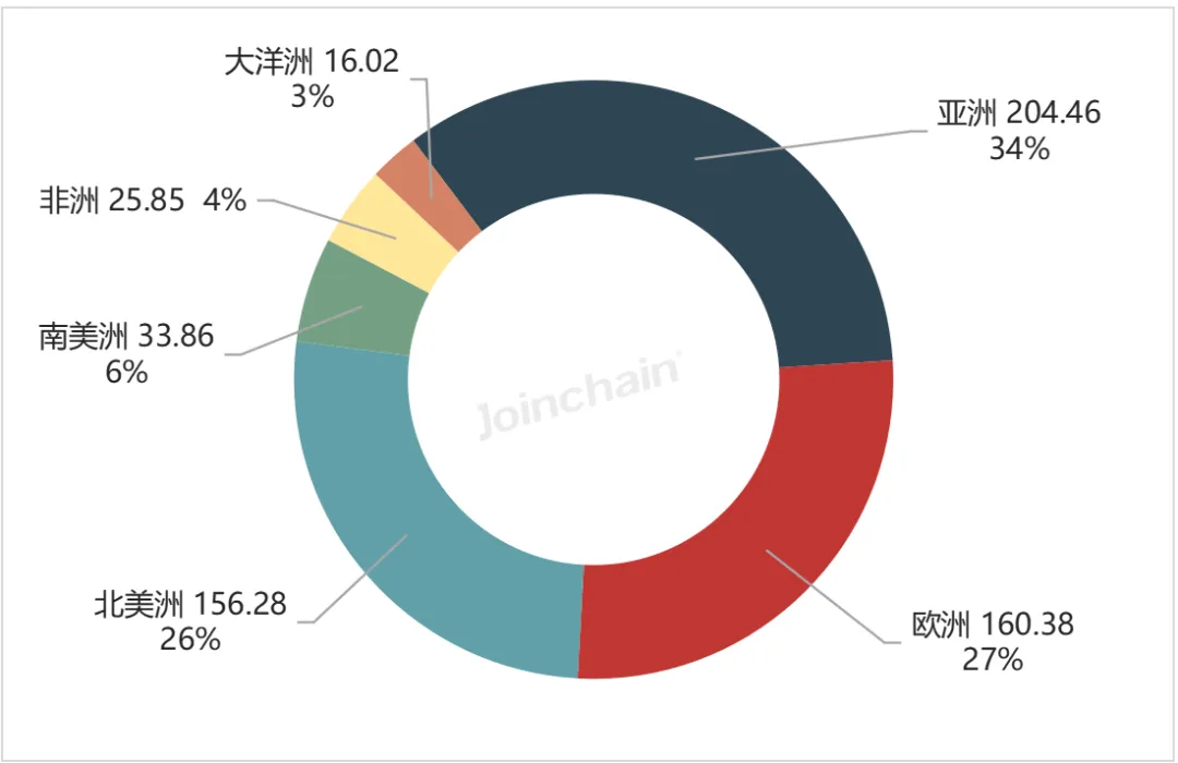 图 3 2025年我国医疗器械出口金额洲际分布情况(单位:亿美元)