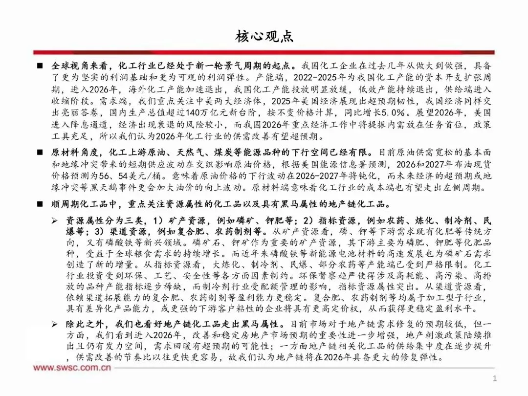 化工行业2026年投资策略:周期破晓,材料乘风