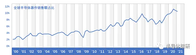将台积电的营收数据除以SIA公布的全球半导体器件市场数据,其比例数字也同样保持着稳定的增长。这说明了台积电在全球半导体行业内的地位和重要性也在不断提升。