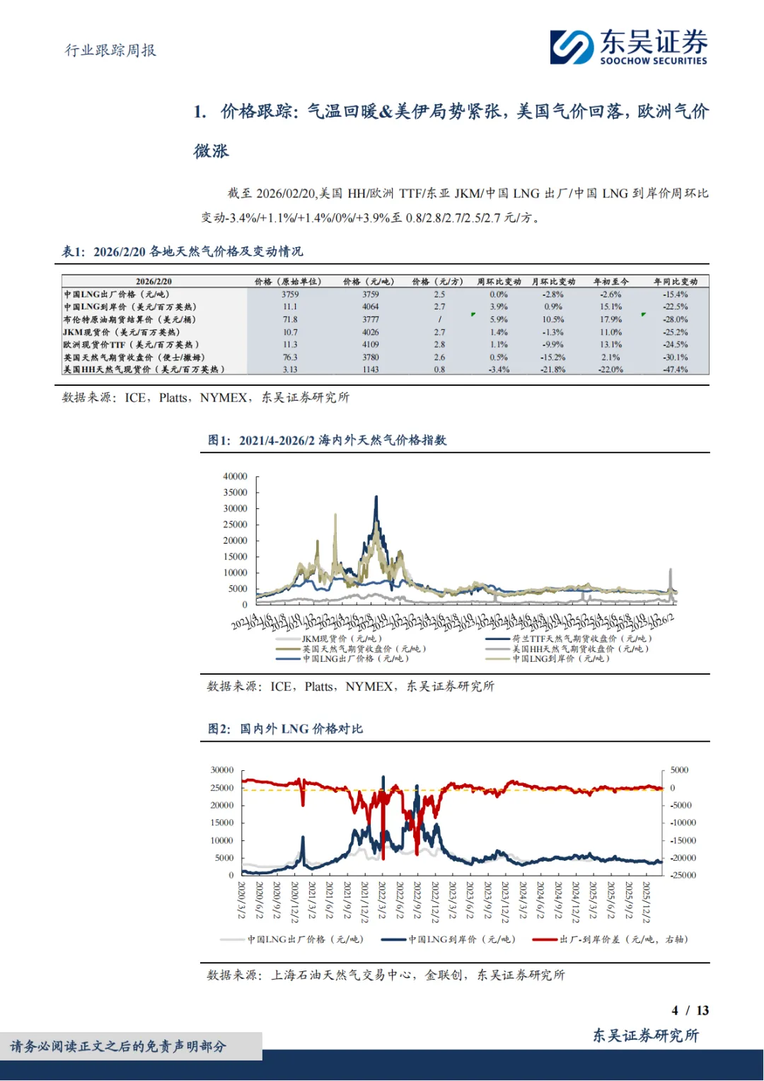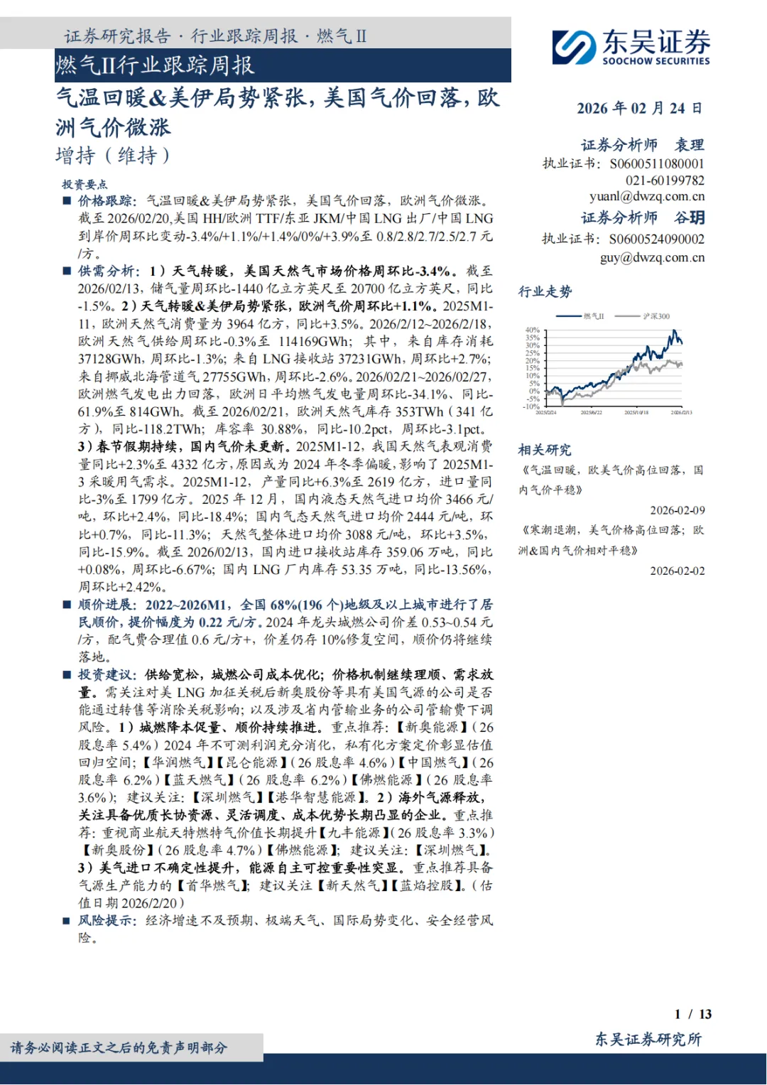 『研报』燃气Ⅱ行业跟踪周报:气温回暖&美伊局势紧张,美国气价回落,欧洲气价微涨