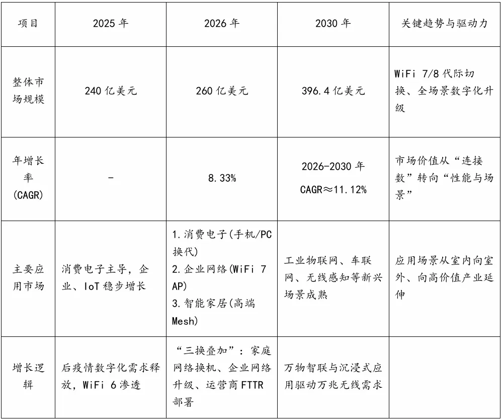 (一)技术迭代:WiFi商用(理论速率46Gbps、延迟<2ms、支持MLO技术),2026年规模化出货。