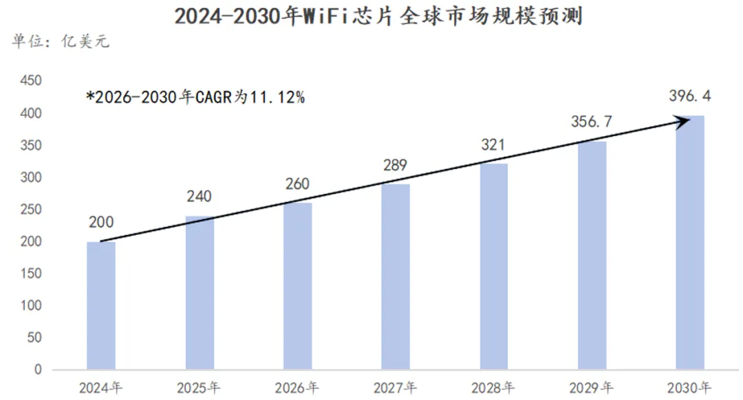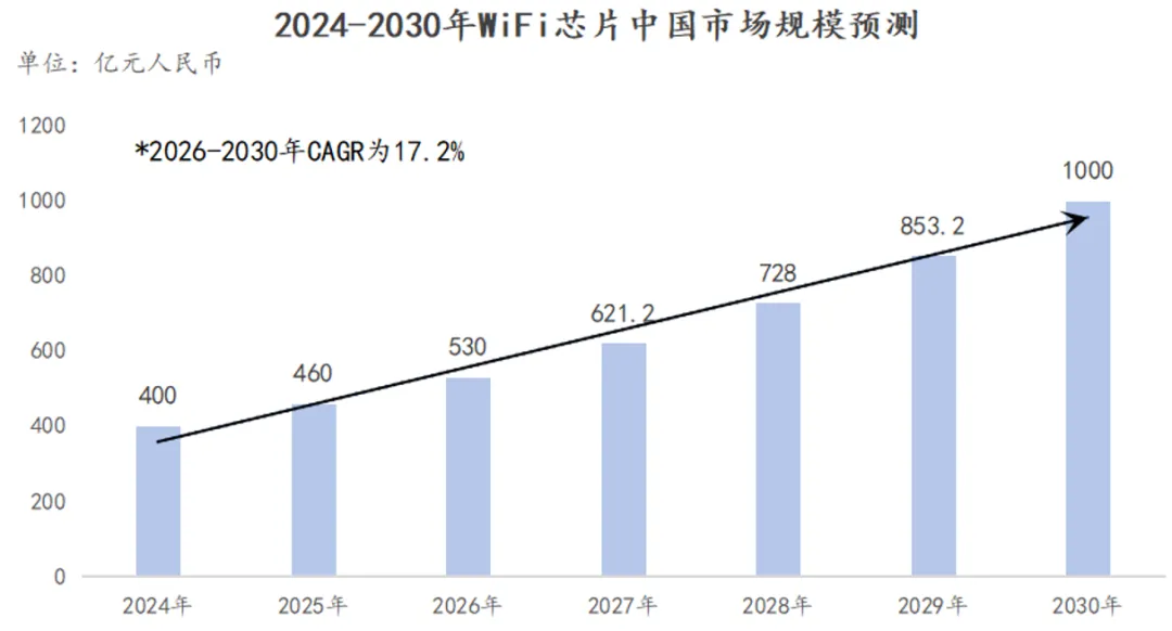 2030年中国WiFi芯片市场规模将达1000亿元人民币。