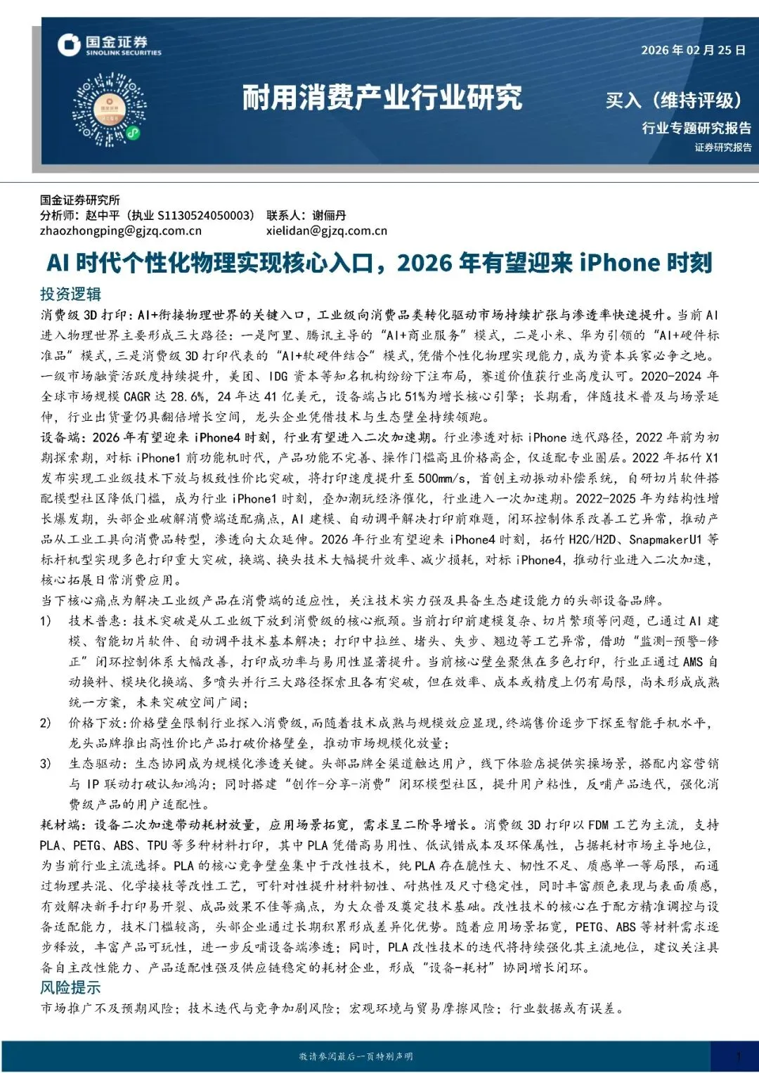 当前位置:首页>行业研报>耐用消费产业行业研究:AI时代个性化物理实现核心入口,2026年有望迎来iPhone时刻