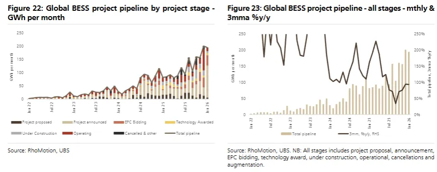 储能是本次锂需求的核心增量,瑞银原预测2026年全球储能需求同比增长60%,目前来看存在显著上修空间: