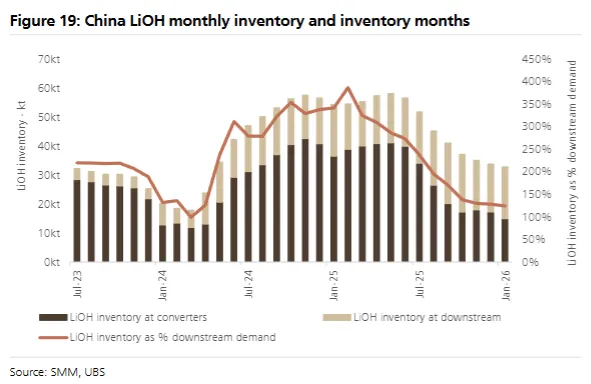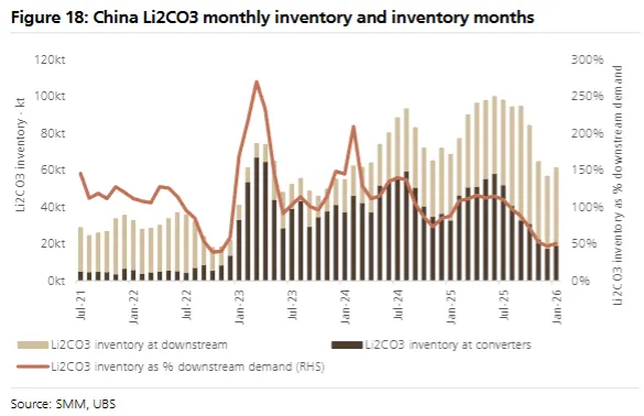 2、碳酸锂:2025年底库存大幅下跌,12月-2026年1月短暂企稳,近期库存再度下降,供应链紧平衡格局加剧;