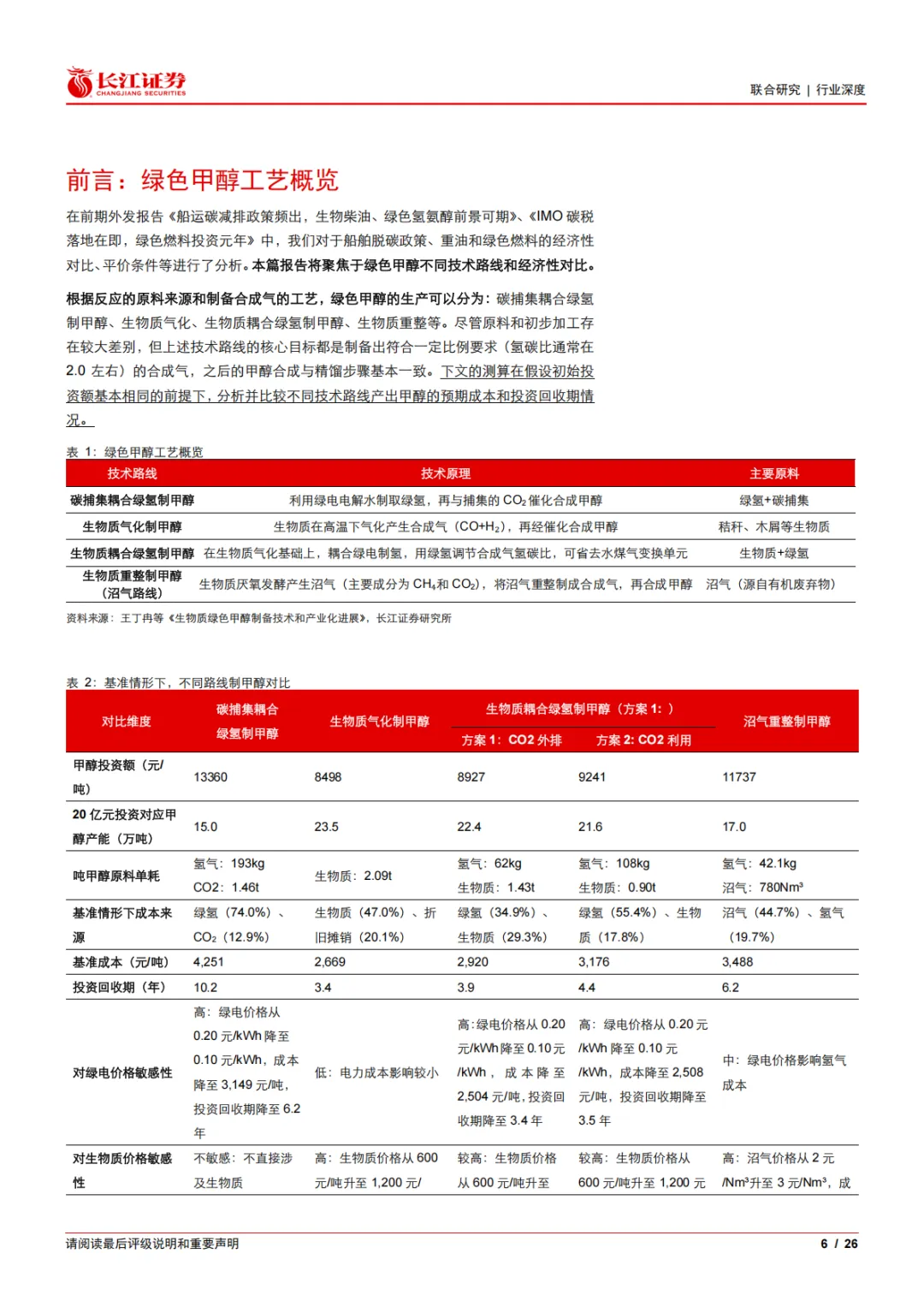 研报 | 绿色甲醇:不同技术路线的经济性如何?