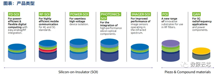 在产品线方面,Soitec专注于晶圆制造业务,生产产品以SOI晶圆为主,同时也生产SiC(碳化硅)、GaN(氮化镓)、POI(压电绝缘体)衬底等化合物半导体材料。具体信息如下表所示。