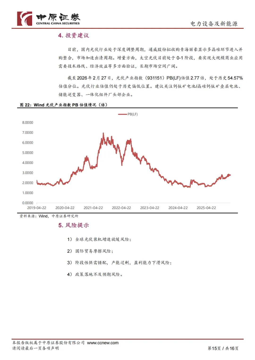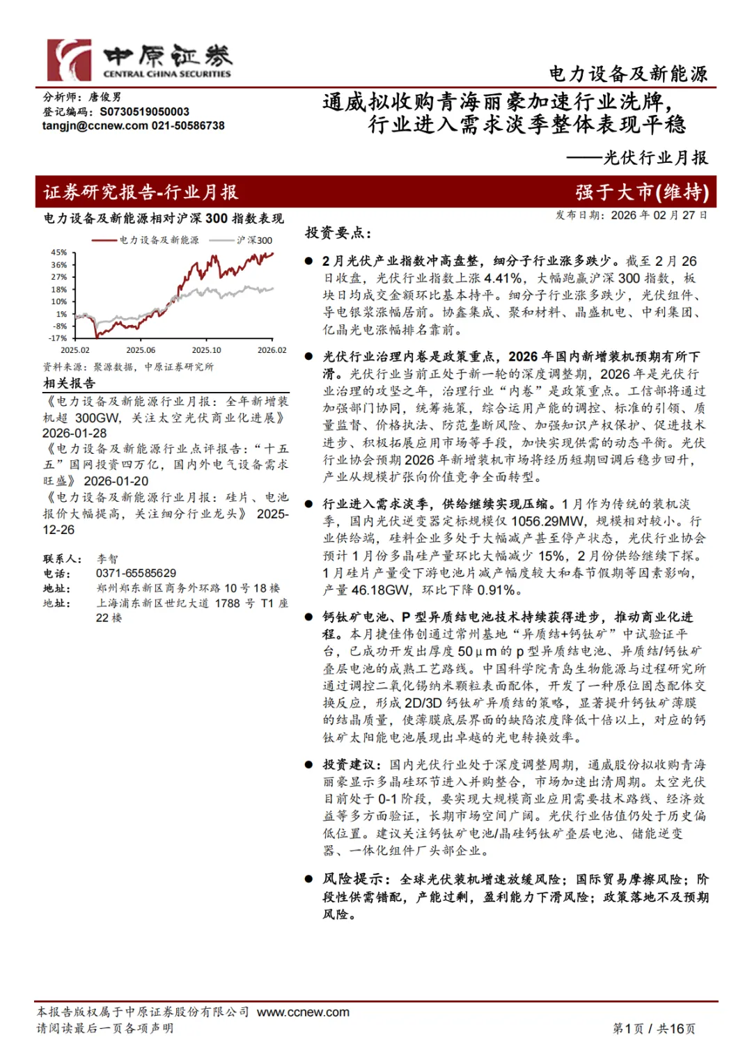 『研报』光伏行业月报:通威拟收购青海丽豪加速行业洗牌,行业进入需求淡季整体表现平稳