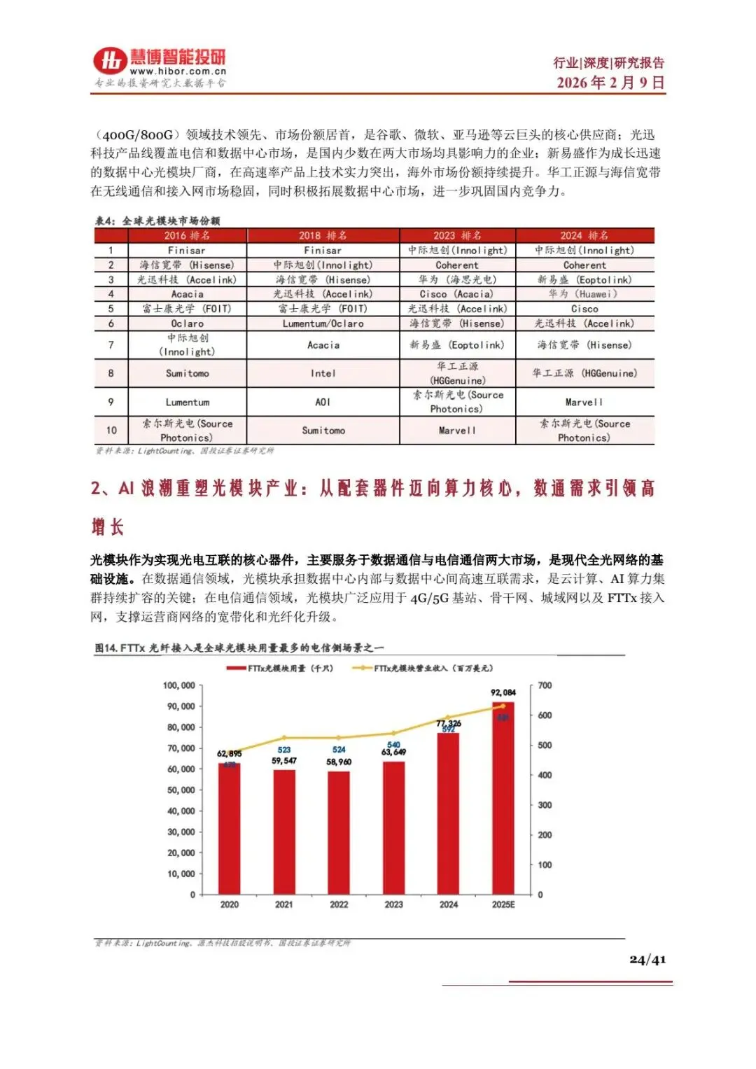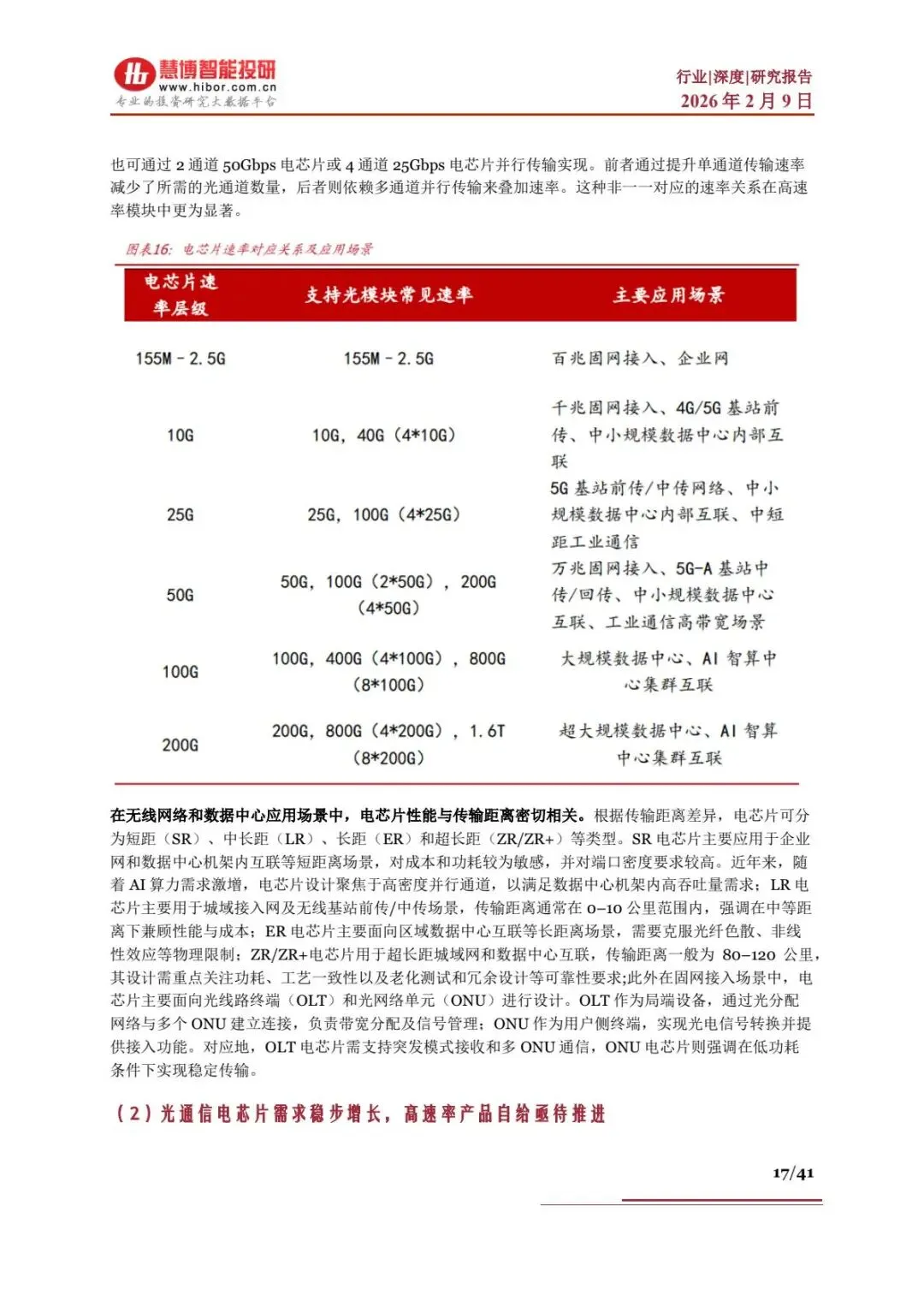 - 应用场景:数通市场(AI 数据中心、云计算)为核心,电信市场(5G、千兆宽带)为基础,同时渗透工业互联网、智能驾驶、量子通信等领域。