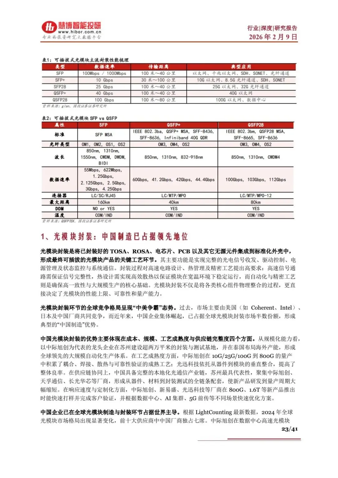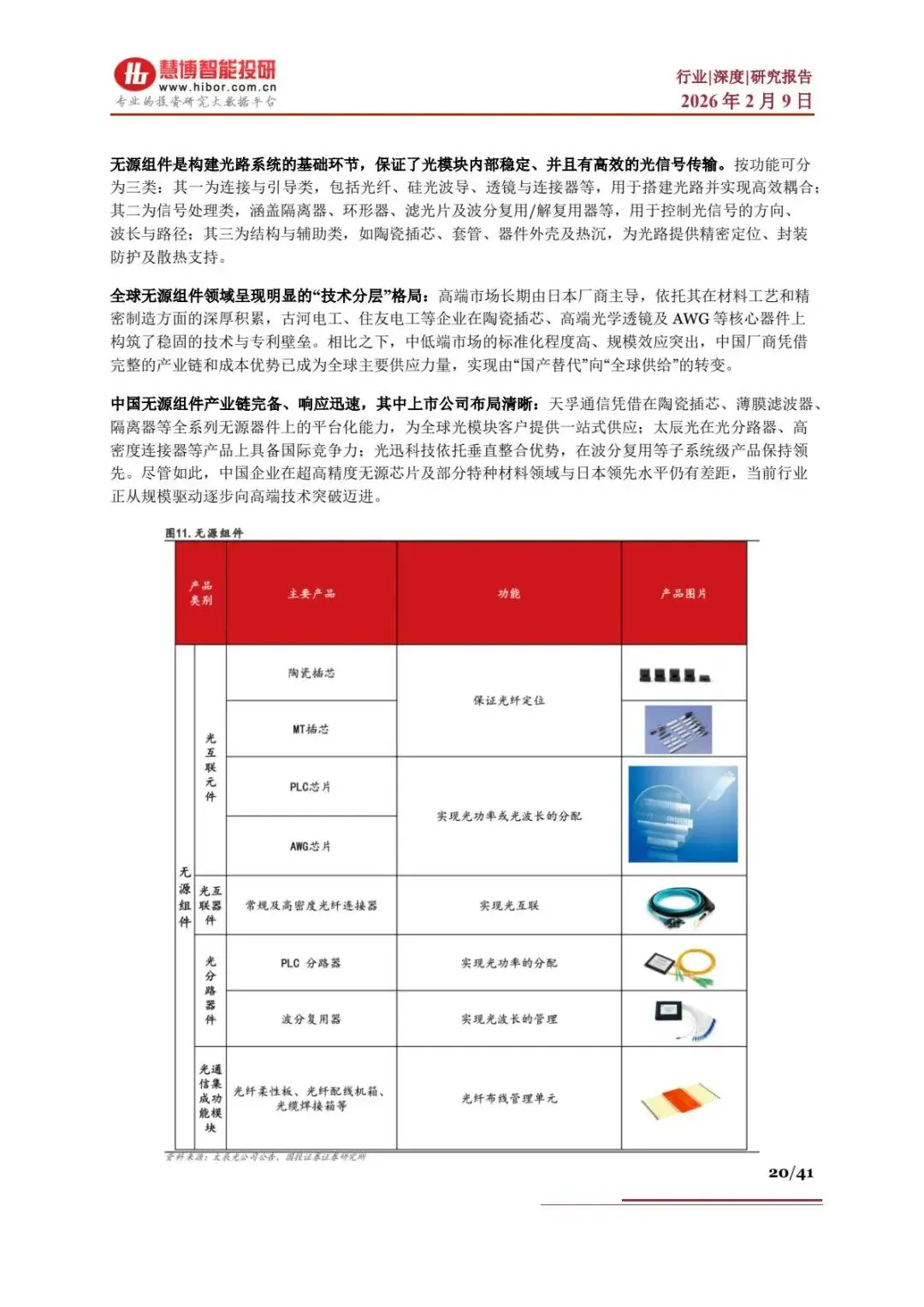 | 光器件 | 无源组件:日本垄断高端,中国主导中低端;封装:中国强势崛起 | 无源组件实现全球供应,封装环节国内技术成熟,为全球主要供应商 | |