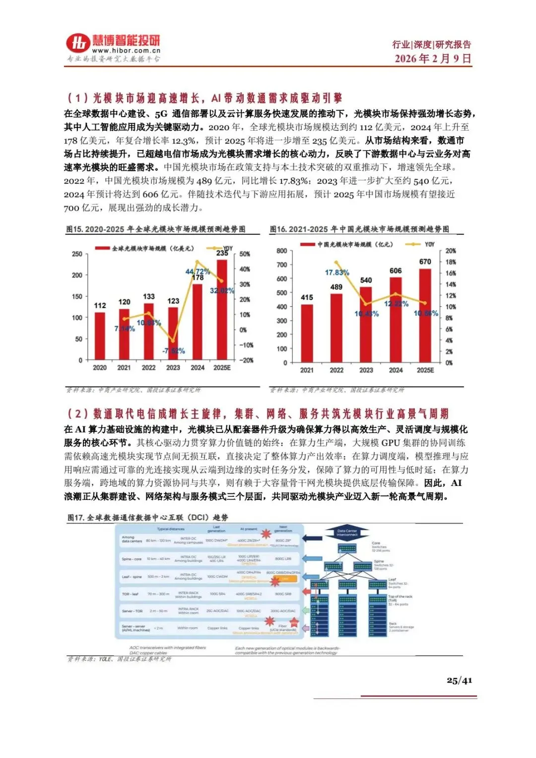 - 算力需求激增:全球算力规模持续提升,AI 大模型训练推动数据中心向超大规模集群发展,对 800G/1.6T 高速光模块需求爆发。