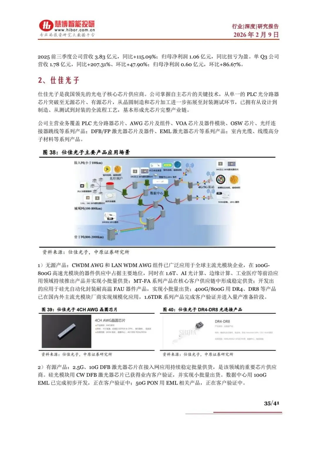 - 仕佳光子:无源 + 有源芯片布局,1.6T DR 系列产品进入量产准备,50G PON EML 客户验证中,25Q4 营收5.69 亿元,同比 + 65%。