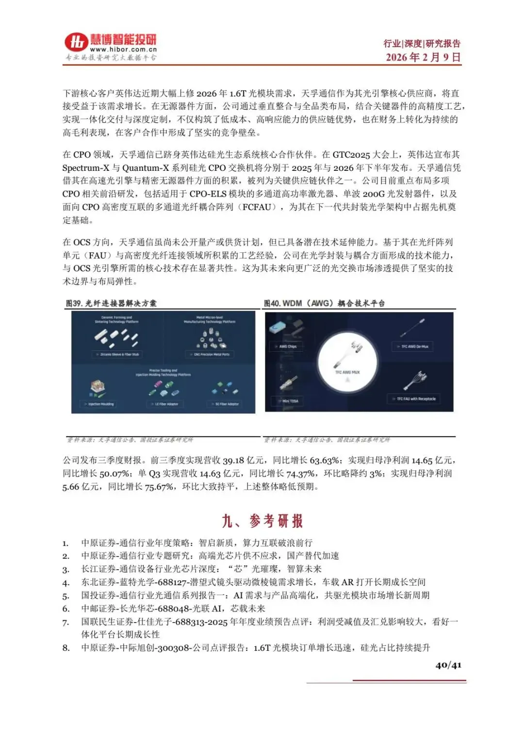 - 天孚通信:无源器件全球领先,为英伟达 CPO 核心供应商,高速光引擎为 1.6T 光模块核心部件,25 前三季度营收39.18 亿元,同比 + 63.63%。