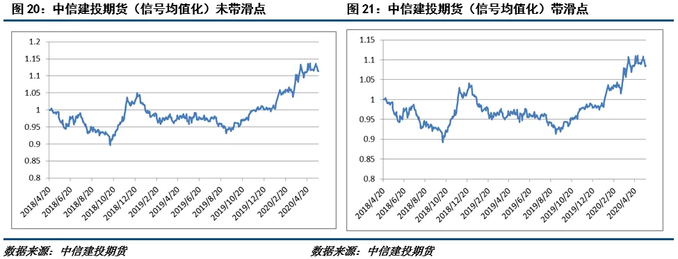 二是,信号均值化处理。借用技术指标中的均线概念,对信号进行均值化处理,使得信号更能反映出主要的趋势,降低交易频率。