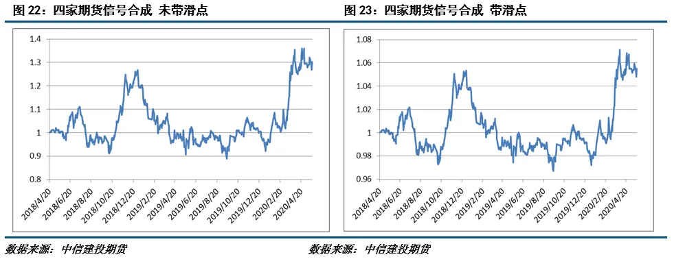 三是,信号加权。对于每个交易日,综合四家期货公司的多空信号进行“投票”处理,以最终的多空信号作为当日的交易信号。