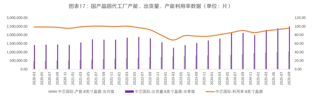 ----晶圆制造:中芯国际、华虹半导体4Q25产能利用率分别为95.7%、103.8%,保持在相对高位,中芯国际表示转入本土化最明显的是模拟芯片,华虹半导体预计未来用于电源管理芯片的BCD平台将继续强劲增长,同时,AD1看到需求指标持续向好。
